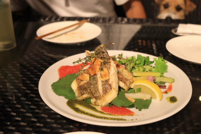 香草焼き。これもとっても美味しかった。ボリュームあった。お魚3切れもあった。