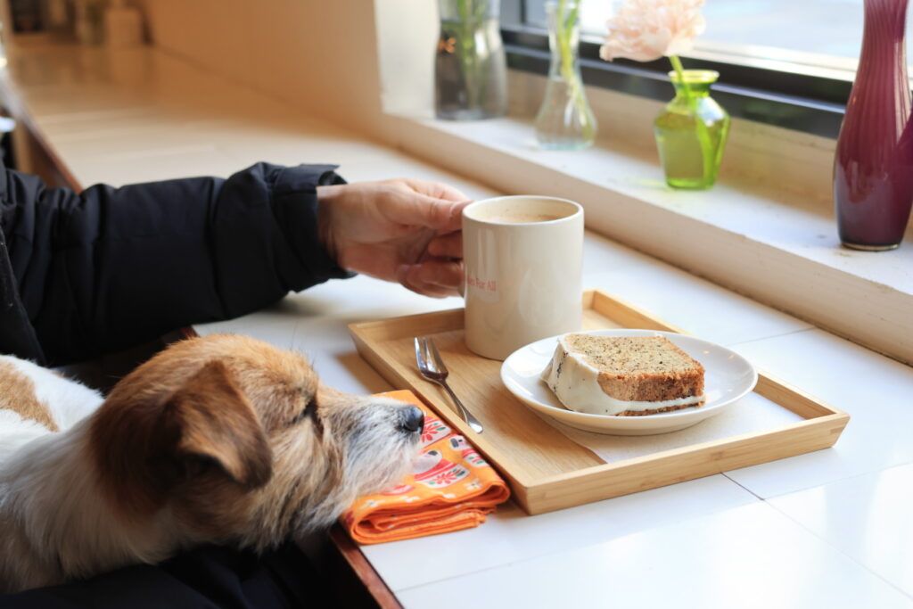 アールグレーのパウンドケーキとスパイスチャイ。どちらもヴィーガン。チャイはオートミルク使用。牛乳がNGのもう1人さんも安心して飲める。オーとミルク感がないらしく、本当に牛乳不使用?って毎回疑ってる。ちゃんと店員さんに確認してます!牛乳不使用だから!そもそも、ここはヴィーガンカフェだしね。