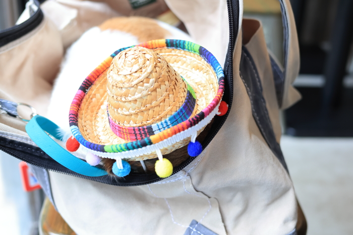 メキシカンを食べに行くと決めていた日。絶対にソンブレロを持って行こうと思ってた。いつも忘れるから