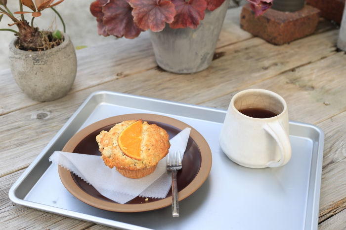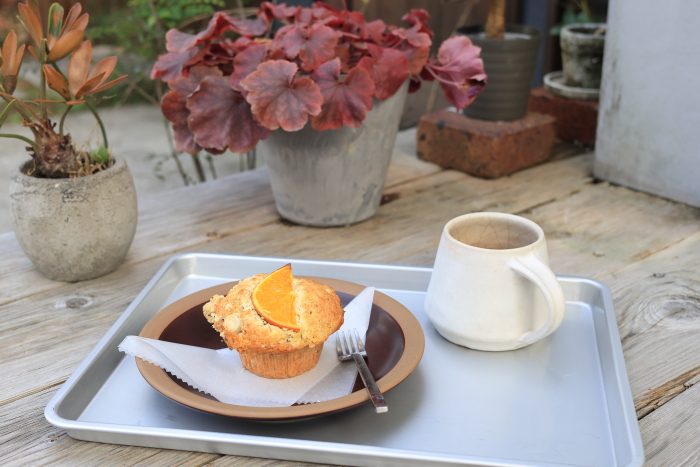 1年ぶりに来た。営業日が減って、なかなかタイミングが合わず。今日はオレンジとアールグレーのマフィン。紅茶と合わせた。