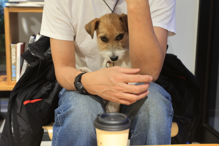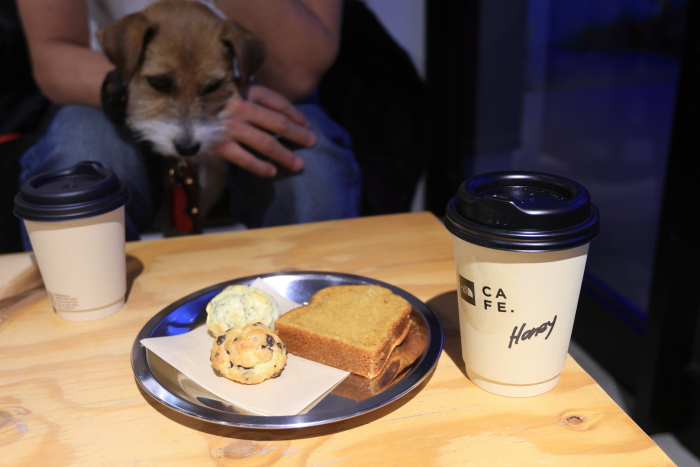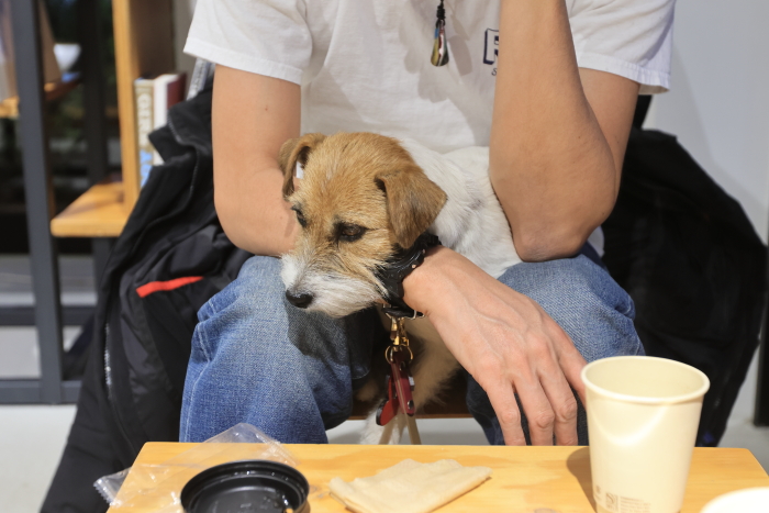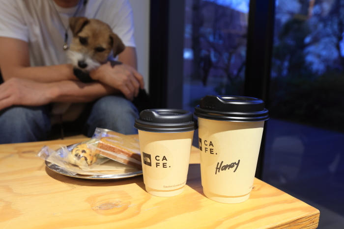 昭島のアウトドアビレッジ、ここのTNFのカフェは店内犬OK。