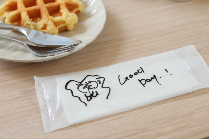 5分で退店したんだけど、モーニングセット500円。Mサイズのコーヒーとワッフル付き。ワッフルだけ食べて、コーヒーはそのまま持って料理教室へ向かった。