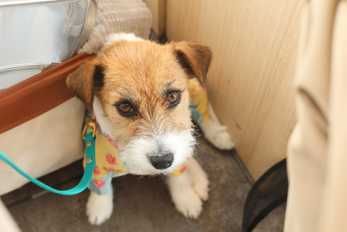 足元にはルル。端っこにオスワリして、気配を消してくれた。本当にお利口だと思う。そこまで頑張って躾してないのに。やっぱり気質だね。シリアスブリーダーから迎えるって、こういうことなんだと思う。