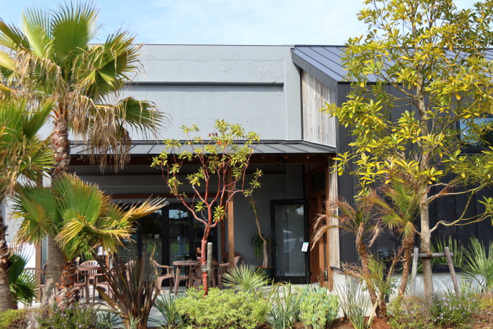 サーフショップ併設で、海らしさが楽しめる雰囲気。