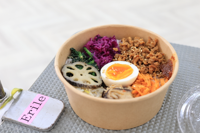 ランチは私が手配した発酵料理教室のおべんとう。人気のビビンバ丼。めっちゃ美味しい。すべてに麹が使われている。味噌だって先生の手作り。本当に体に良いごはん。また自主練の会があったら参加しよう。