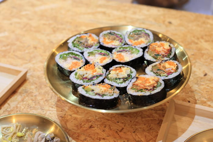 ツナ、プルコギ、韓国おでん、豚キムチのキンパ。色々選べて楽しい。